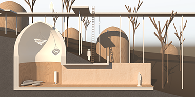 Primality n. relating to an early stage of human development; basic; visceral Primality aims at capturing the rawness of nature and incorporating it into architecture, rather than recreating the primitive huts used by our ancestors. This can range from a basic color palette to invoke primal urges, such as proximity to danger and sexuality. These can be achieved through the presence of water, heights, internal perches, sensual forms, etc. Note the "difficult path" of the ladder and the hanging rope, versus the "easy path" of climbing the slope in order to reach the path above. The Serengeti is an obvious match-up for primality. With low mountains bordering sweeping grasslands, it's a beautiful place where nature takes its course. Wild animals and the lack of immediate civilization both offer essential qualities for a building of primality.